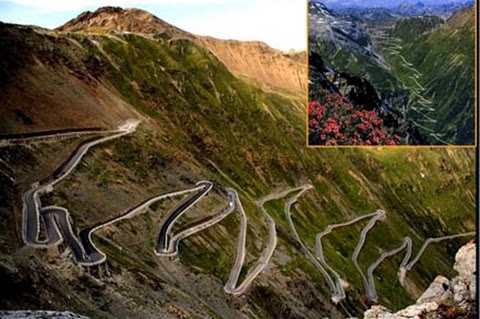Passagem de Stelvio (“Passo dello Stelvio”), nos Alpes italianos, próximo à fronteira com a Suíça