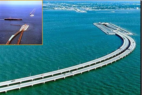 Pontes-túneis na baía de Chesapeake, em Maryland, EUA, que permitem a passagem dos navios de guerra da base de Norfolk, no viznho Estado da Virgínia