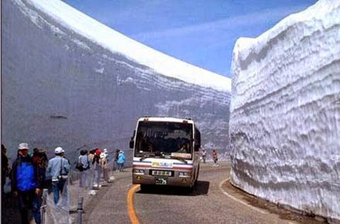 Corredor de neve na estrada para o Monte Tateyama, nos chamados Alpes japoneses