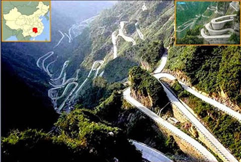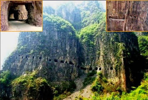 Estrada-túnel de Guoliang, na China. Como a vila de Guoliang estava isolada num vale, moradores abriram pacientemente, em 1972, por conta própria, um túnel na rocha, usando apenas picaretas